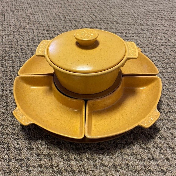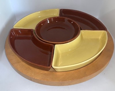 A number of serving pieces stand out for their association with a specific time period, and few things shout out “Mid-Century!” quite like Lazy Susans, fondue pots, and chip and dip sets. These serving pieces are also an easy find online, at thrift stores, and at secondhand shops – and it is near impossible to find them in anything other than the colors that are so closely associated with the era – avocado, burnt orange, turquoise, pale yellow, and more.