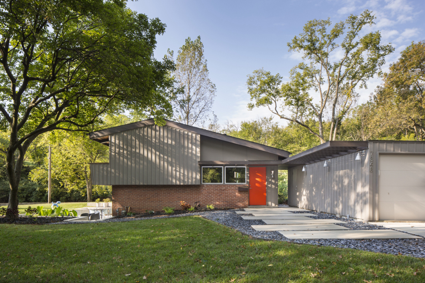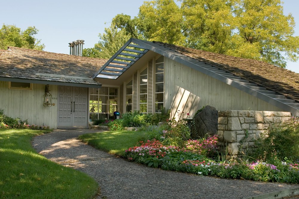 A boomerang shaped Bob Wendt home in Prairie Village that stretches across a corner lot. PC: Squarespace-Bob Wendt